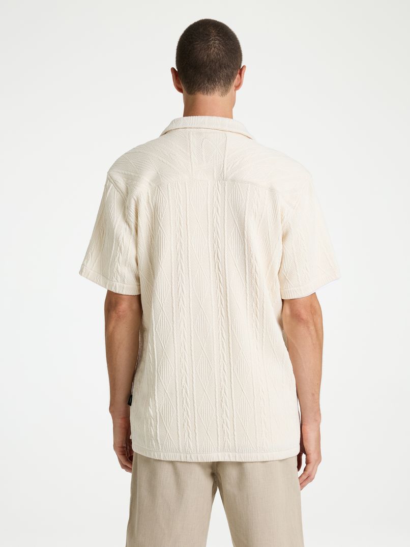 De Doby Vertigo is een short sleeve overhemd met een regular pasvorm en een klassieke kraag. Dit overhemd is gemaakt van een mix van polyester en elastaan, wat zorgt voor een hoog draagcomfort en veel bewegingsvrijheid. De Doby Vertigo heeft een speciaal patroon dat doorloopt tot in de kraag en hij is voorzien van een tonal CHASIN' logo op de borst. Draag hem met de knopen dicht voor een iets nettere look, of open met een mooi basic t-shirt voor casual gelegenheden.